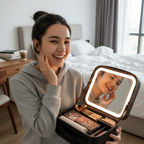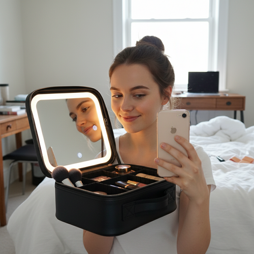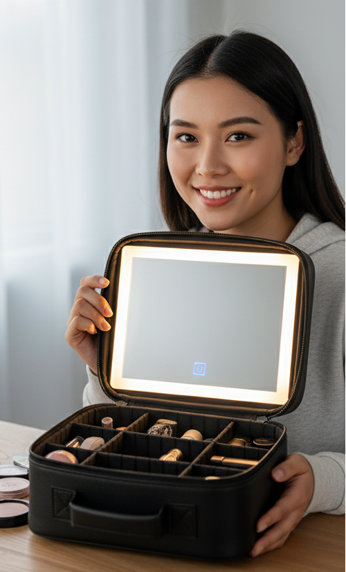 Con OZNAIR LED Makeup Bag, cada detalle importa: luz profesional, compartimentos inteligentes y diseño elegante que transforma cualquier lugar en tu tocador ideal.